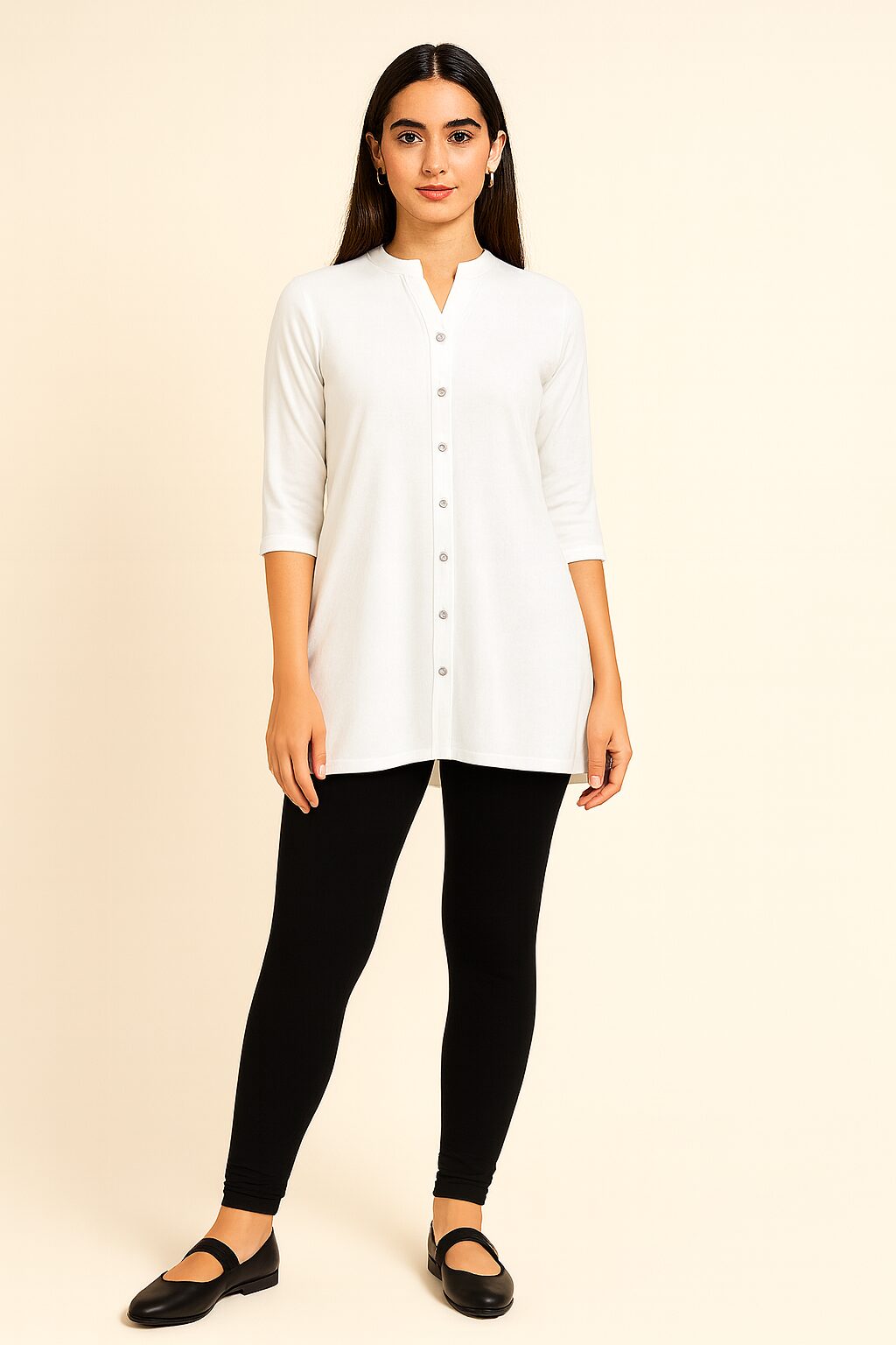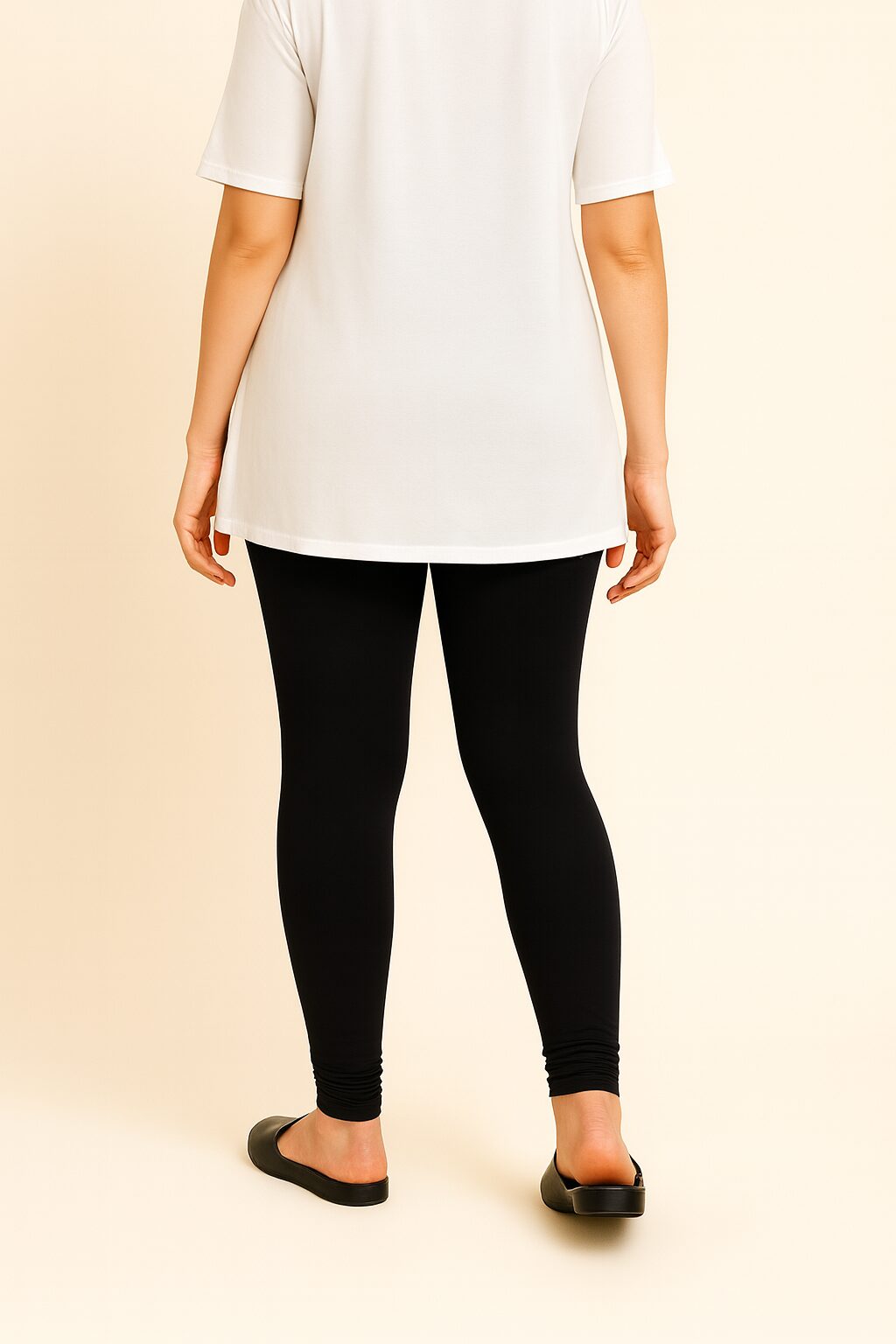 The Black colour shade pairs beautifully with whites, blacks, beige, floral tops, and ethnic tops . Designed to move with you, these leggings stay in shape even after multiple washes. Whether you’re dressing up for a casual outing or styling for traditional events, these leggings bring confidence and charm to your look.
