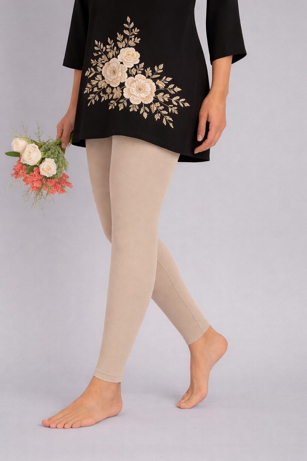 The light lvory Ankle  colour shade pairs beautifully with whites, blacks, beige, floral tops, and ethnic tops . Designed to move with you, these leggings stay in shape even after multiple washes. Whether you’re dressing up for a casual outing or styling for traditional events, these leggings bring confidence and charm to your look.
