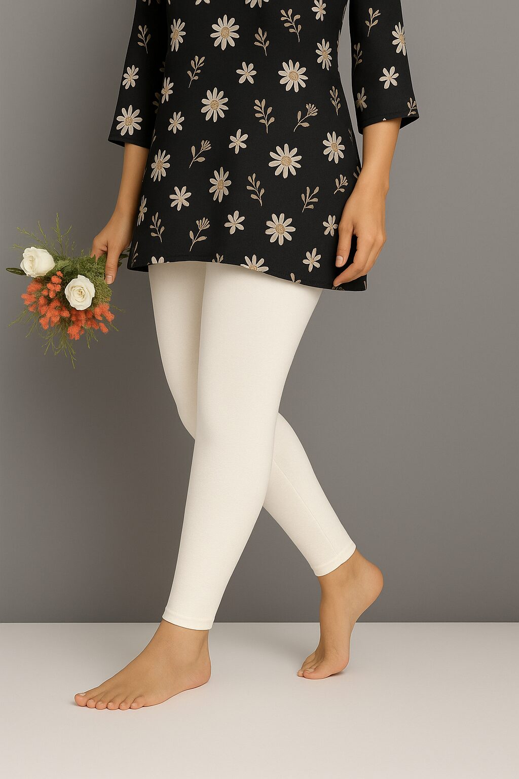 Off white ankle length leggings:Stay Stylish. Stay Comfortable