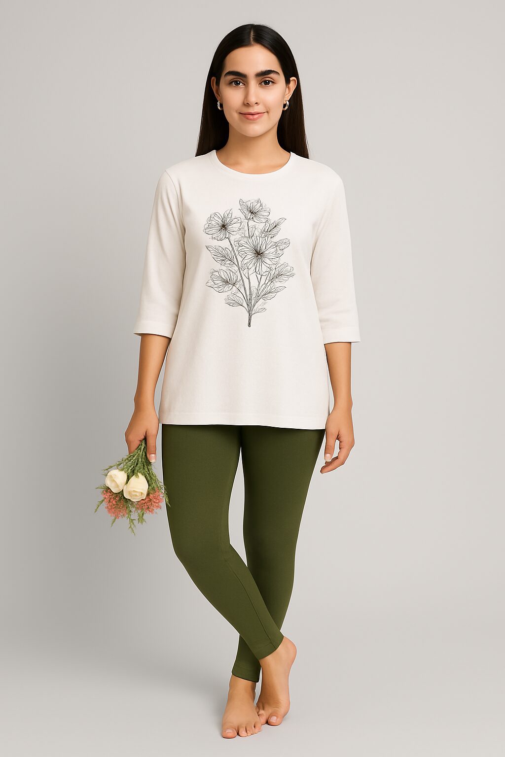 Olive green Ankle length leggings for women
