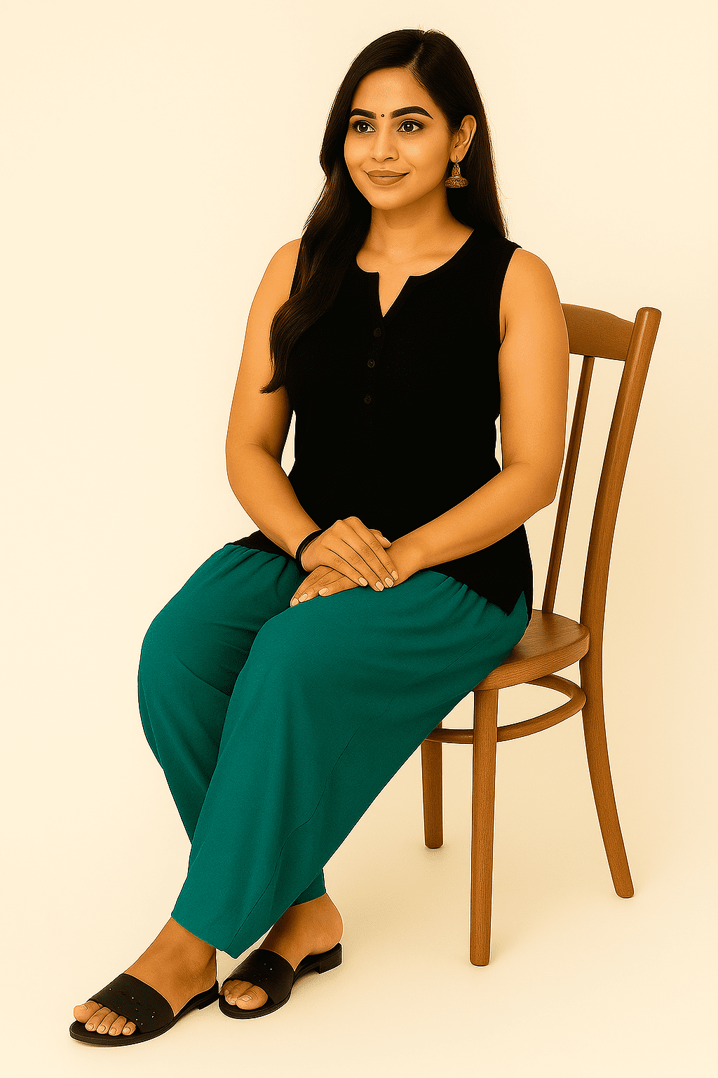The classic Patiala design features a loose fit with elegant pleats that allow free movement while enhancing your ethnic look. The rich green color adds a natural and graceful charm, pairing beautifully with kurtis, tunics, and ethnic tops.