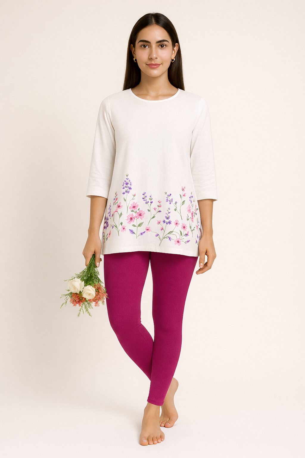 The Raspberry pink Ankle  colour shade pairs beautifully with whites, blacks, beige, floral tops, and ethnic tops . Designed to move with you, these leggings stay in shape even after multiple washes. Whether you’re dressing up for a casual outing or styling for traditional events, these leggings bring confidence and charm to your look.